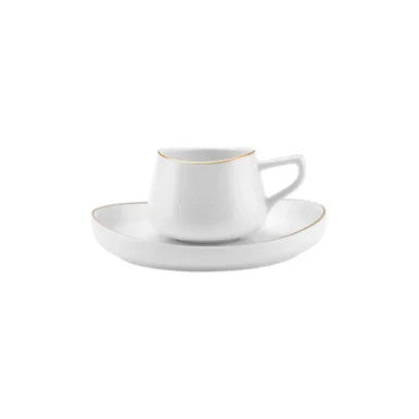 The Karaca Streamline Hole Coffee Cup Set is a refined collection designed for serving Turkish coffee or espresso. This 12-piece set includes six cups, each with a capacity of 80 milliliters, accompanied by matching saucers. Crafted from high-quality porcelain, the set features a minimalist white design accented with a delicate gold rim, adding a touch of elegance to your coffee experience. The cups are ergonomically designed for a comfortable grip, while the saucers provide a stable base. To maintain the pristine condition and longevity of the set, hand washing is recommended.