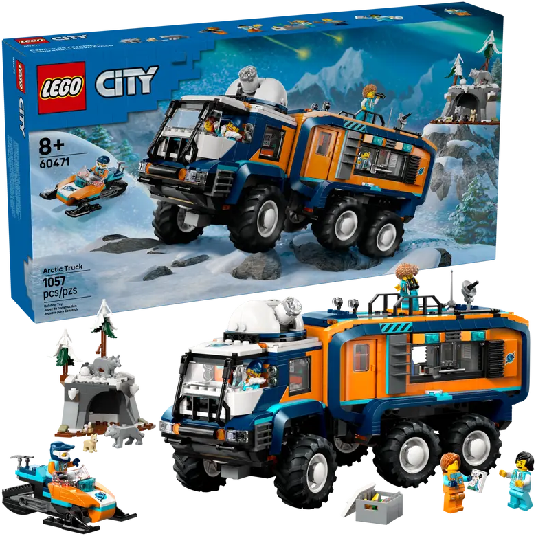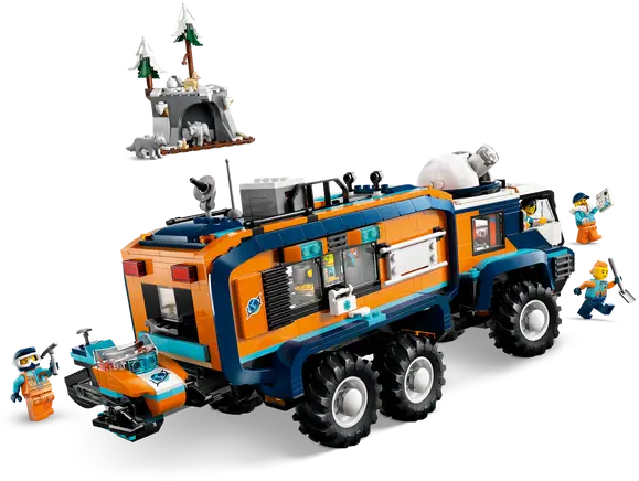 This LEGO City Arctic Explorer Science Lab Truck set lets budding adventurers gear up for thrilling cold-region missions! The massive articulated science-lab truck comes with six-wheel suspension, deep-tread tires and a rooftop observatory that rotates for full exploration. Open the truck to reveal a driver’s cab, a working laboratory, and a living area complete with a kitchen, bedroom and bathroom. The set also includes a snowmobile and a cave scene—plus five explorer minifigures and three Arctic walk animal figures (including a wolf pup) for immersive storytelling and role-play fun. Compatible with the LEGO Builder app for digital building instructions, this 1,064-piece playset is designed for fans aged 8 and up and offers a premium STEM-inspired building experience.