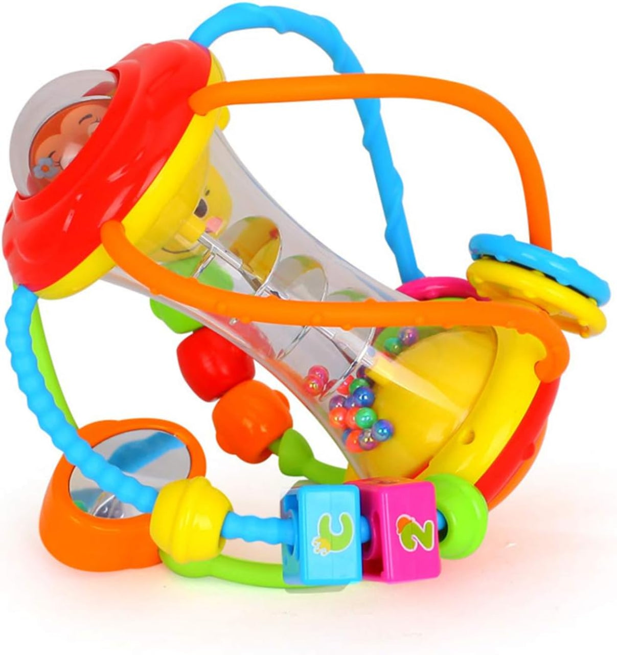 The Mola Baby Activity Toy (MPN: 929) is a fun and educational toy designed for infants 3 months and older. With bright colors, a cheerful face, and multiple activity features, it keeps babies entertained while stimulating their senses. The toy includes rattling beads, mirrors, textured handles, and movable parts to encourage tactile exploration, hand-eye coordination, and early learning.