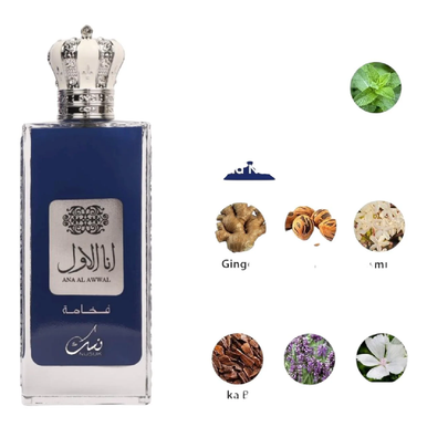 Ana Al Awwal Blue by Nusuk is a refined oriental fragrance for men, blending fresh citrus and warm spices with a smooth, sensual base. It opens with an invigorating mix of lime, cardamom, and mint for a crisp and energetic start. The heart unfolds with orange blossom, ginger, clove, and jasmine sambac, adding aromatic warmth and elegance. The fragrance settles into a rich base of tonka bean, vanilla, amber, and patchouli, creating a lasting and masculine trail.