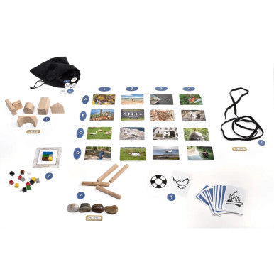 Pictures is a quick-play family game with very simple rules! Form the image on your secret picture card with one set of materials; either shoelaces, colored cubes, icon cards, sticks and stones or building blocks, in such a way that the other players guess what image you have pictured: Pull out a marker from the bag that determines your secret picture Rebuild that image with your components for it to be recognizable. And finally guess what image every player has pictured. They must also guess yours! The players get points for correctly guessing other players images and for other players guessing their image. The player with the most points wins!