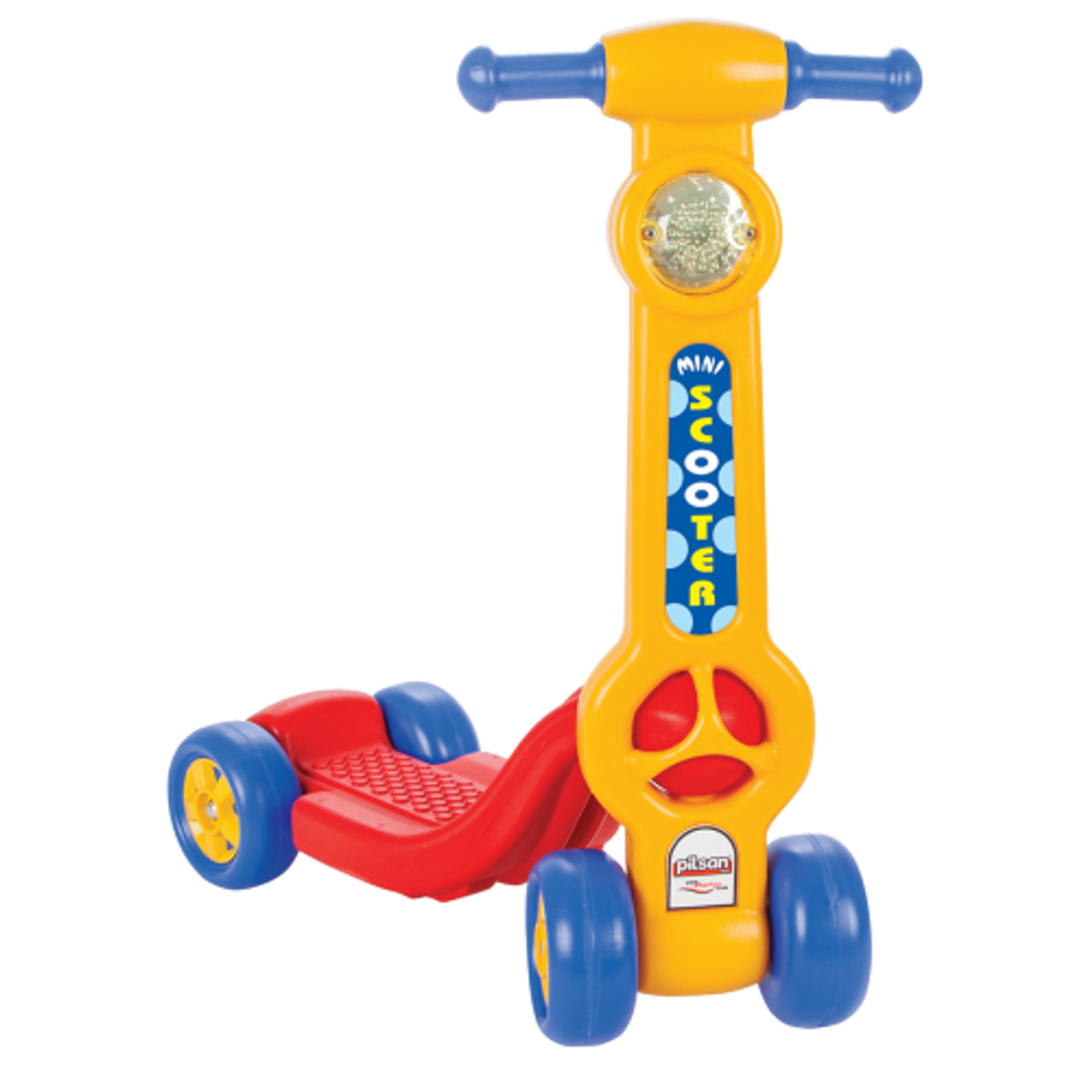 The Pilsan Mini Scooter (07-811) in bright yellow is a fun and durable scooter designed for young children to enjoy active play safely. Featuring a stable three-wheel design, comfortable handle grips, and a playful horn, this scooter helps kids develop balance, coordination, and motor skills while having fun indoors or outdoors. Made from sturdy, non-toxic plastic, it ensures safe and long-lasting use.