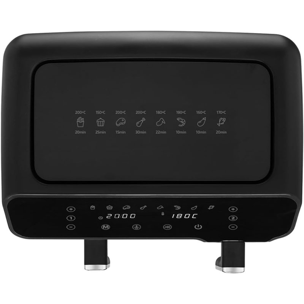 The Ufesa Storm Air Fryer offers a powerful and efficient cooking experience with its 2700W power and 9L capacity, divided into two compartments (5.5L and 3.5L). This allows you to cook two different foods simultaneously, making meal preparation faster and more convenient. The fryer features 8 preset programs for various dishes, including French fries, baking, meat, chicken thighs, chicken wings, seafood, vegetables, and fish.